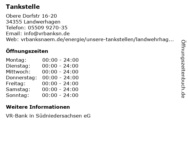| Öffnungszeiten Tankstelle in Landwerhagen anzeigen | |