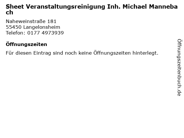 | Sheet Veranstaltungsreinigung Inh. Michael Mannebach anrufen | |