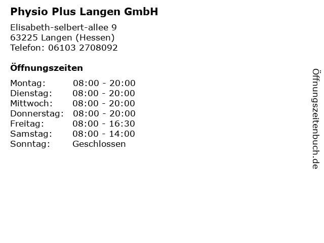 Branchen & Suchbegriffe zu Physio Plus Langen GmbH:langen, physio, plus |