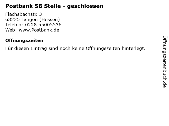 Postbank SB Stelle - geschlossen in Langen (Hessen) | Telefonnummer, Öffnungszeiten und Adresse