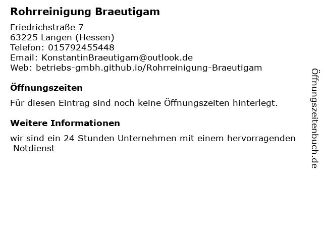 1 Rohrreinigung Neu-Isenburg Oliver Voigt (Entfernung: 6,80 km) Frankfurter Str. 86, 63263 Neu-Isenburg 6 |