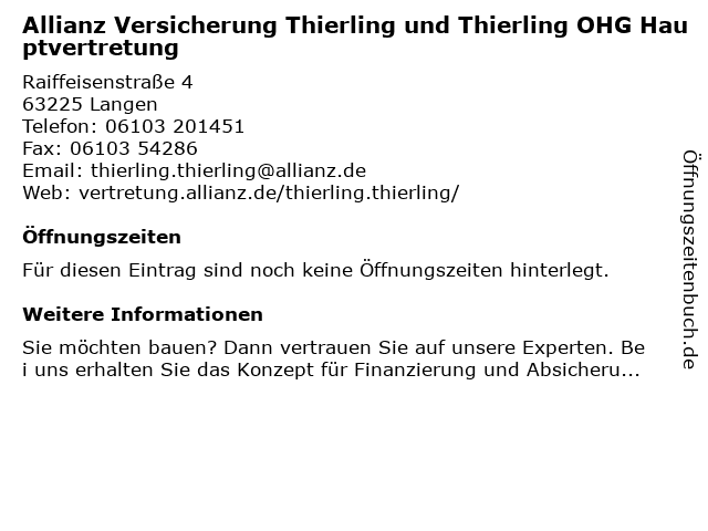 | Allianz Versicherung Thierling und Thierling OHG Hauptvertretung anrufen | |