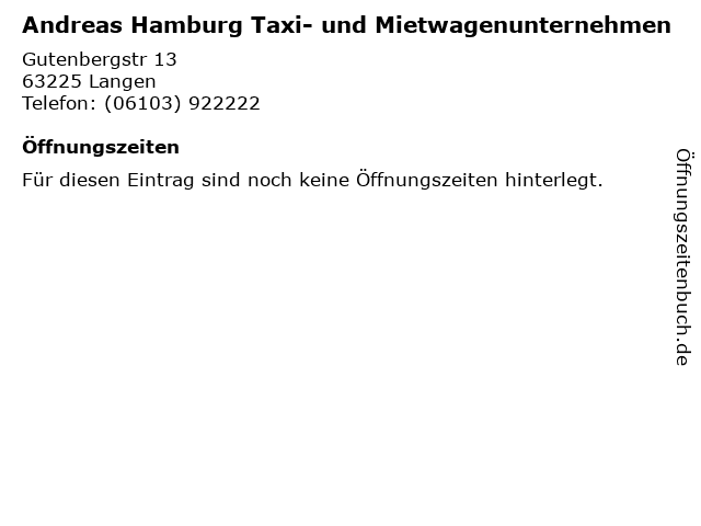 | Andreas Hamburg Taxi- und Mietwagenunternehmen anrufen | |