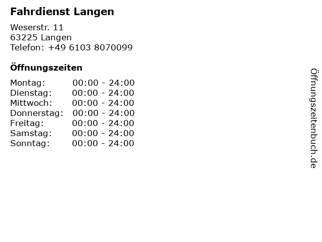 | Öffnungszeiten Fahrdienst Langen in Langen anzeigen | |