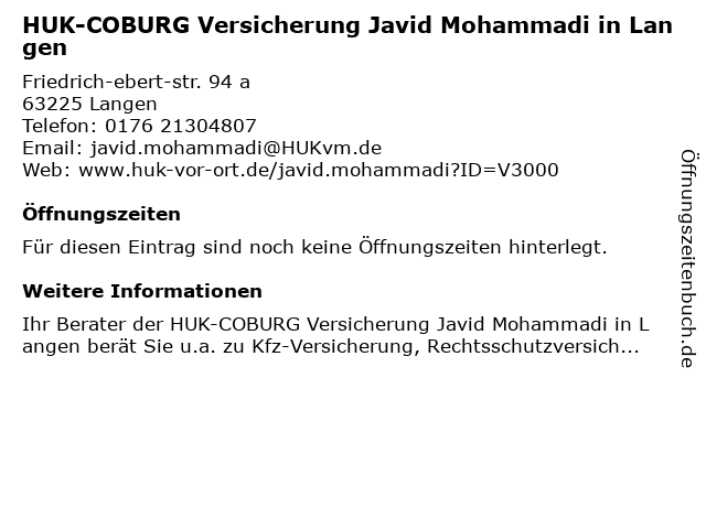 | HUK-COBURG Versicherung Javid Mohammadi in Langen anrufen | |