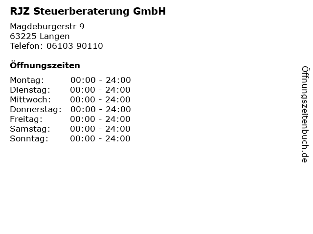 | Öffnungszeiten RJZ Steuerberaterung GmbH in Langen anzeigen | |