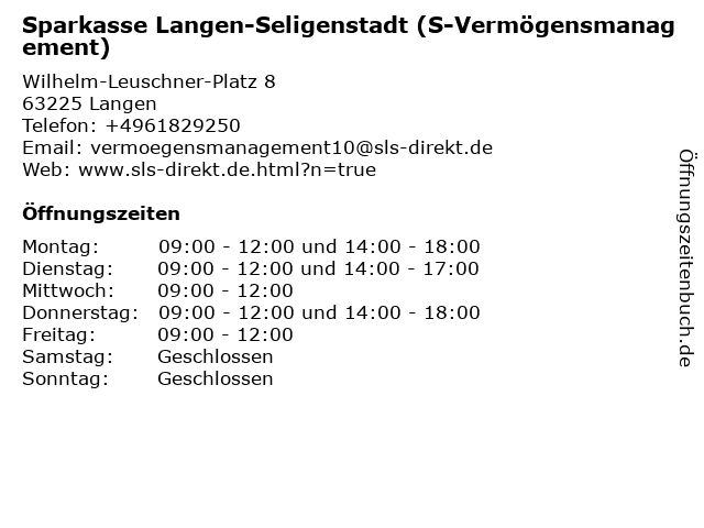Branchen & Suchbegriffe zu Sparkasse Langen-Seligenstadt (S-Vermögensmanagement):langen, sparkasse, vermögensmanagement |