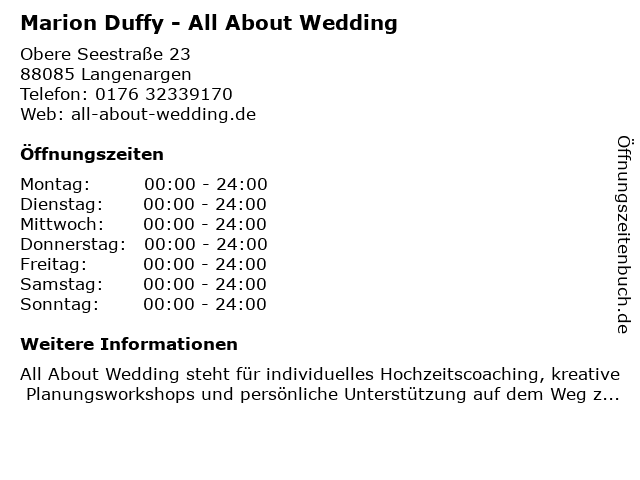 Branchen & Suchbegriffe zu Marion Duffy - All About Wedding:about, all, duffy, marion, veranstaltungsort, wedding |