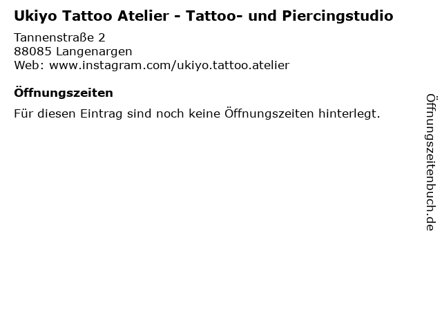 | Öffnungszeiten Ukiyo Tattoo Atelier - Tattoo- und Piercingstudio in Langenargen anzeigen | |