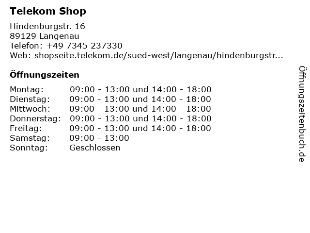 | Telefonnummer Telekom Shop in Langenau (+49 7345 237330) anrufen | |