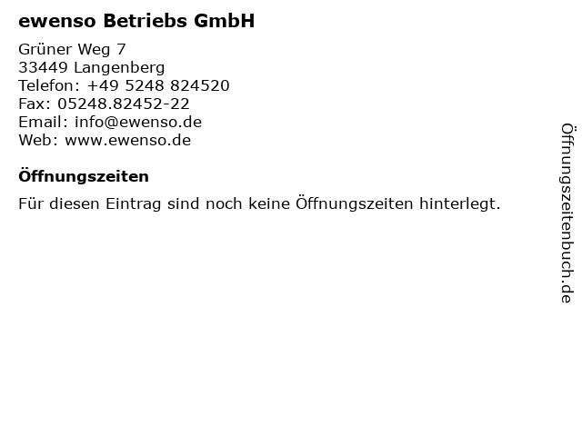 | Öffnungszeiten ewenso Betriebs GmbH in Langenberg anzeigen | |