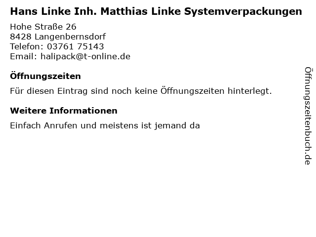 | Hans Linke Inh. Matthias Linke Systemverpackungen anrufen | |