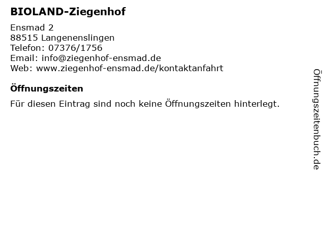 | Öffnungszeiten BIOLAND-Ziegenhof in Langenenslingen anzeigen | |