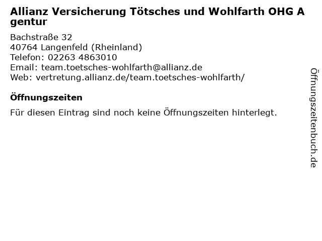 | Allianz Versicherung Tötsches und Wohlfarth OHG Agentur anrufen | |