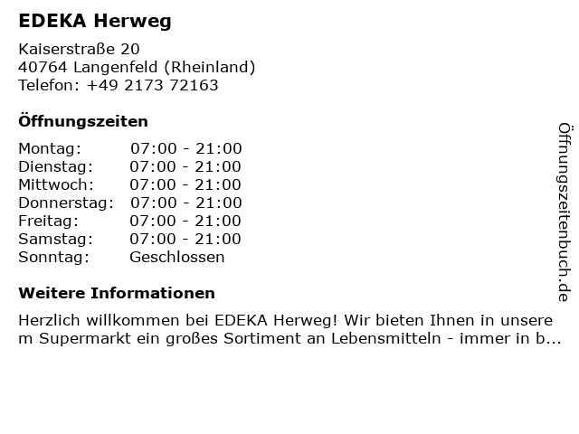 | Öffnungszeiten EDEKA Herweg in Langenfeld (Rheinland) anzeigen | |