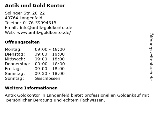Öffnungszeiten Antik und Gold Kontor in Langenfeld anzeigen | |