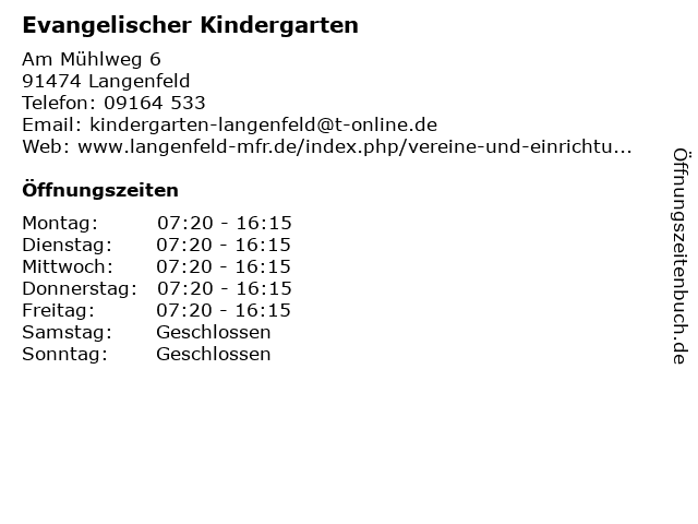 | Öffnungszeiten Evangelischer Kindergarten in Langenfeld anzeigen | |