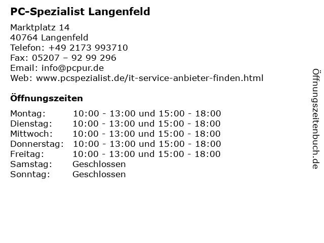 | Öffnungszeiten PC-Spezialist Langenfeld in Langenfeld anzeigen | |