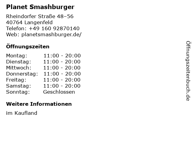 | Öffnungszeiten Planet Smashburger in Langenfeld anzeigen | |