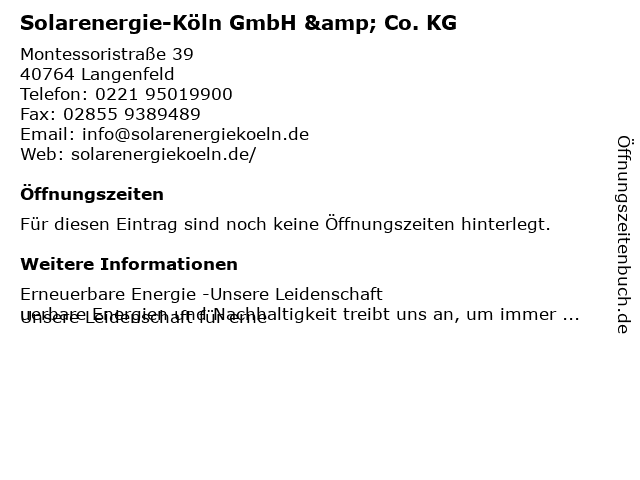| Solarenergie-Köln GmbH & Co. KG anrufen | |