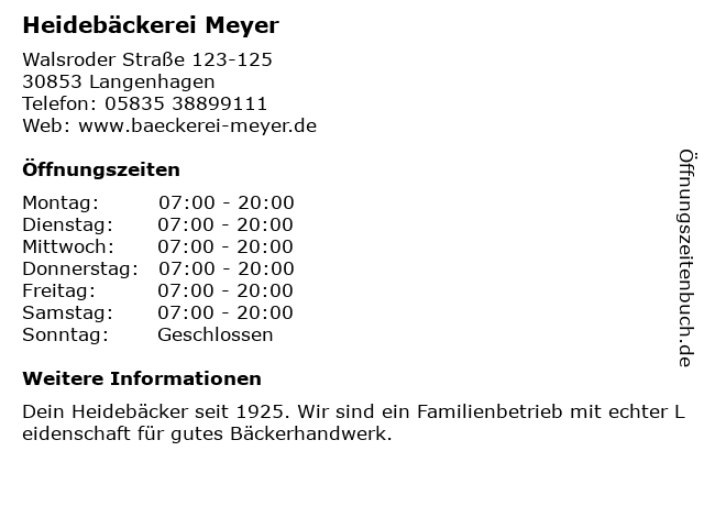 | Öffnungszeiten Heidebäckerei Meyer in Langenhagen anzeigen | |