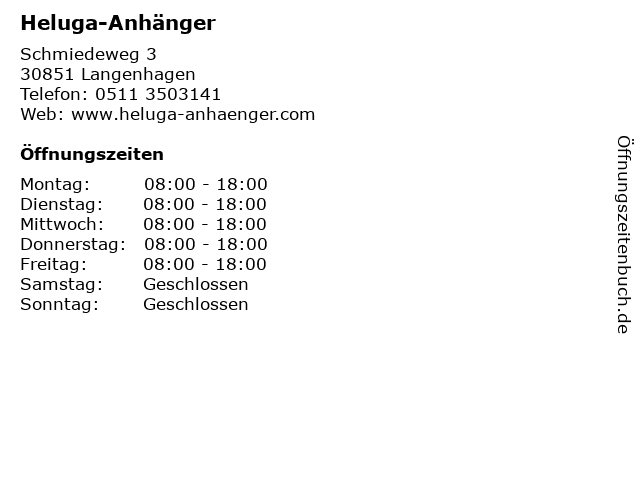 | Öffnungszeiten Heluga-Anhänger in Langenhagen anzeigen | |