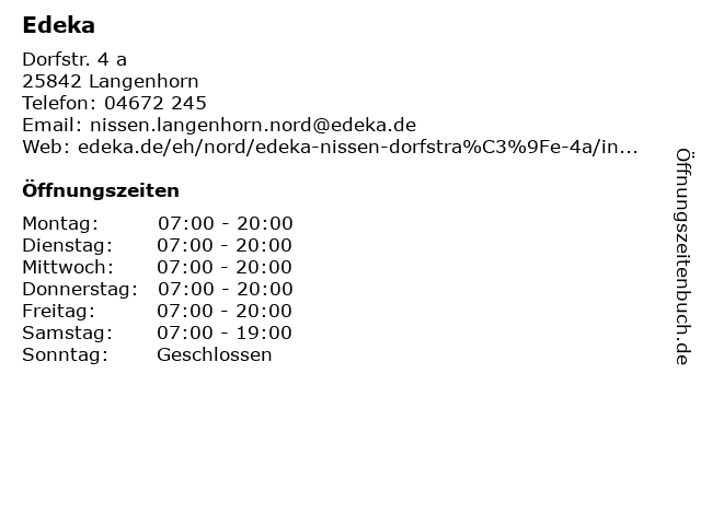 | Öffnungszeiten Edeka in Langenhorn anzeigen | |