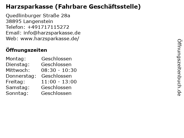 Branchen & Suchbegriffe zu Harzsparkasse (Fahrbare Geschäftsstelle):fahrbare, geschäftsstelle, harzsparkasse |