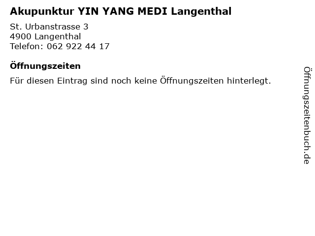 | Akupunktur YIN YANG MEDI Langenthal anrufen | |
