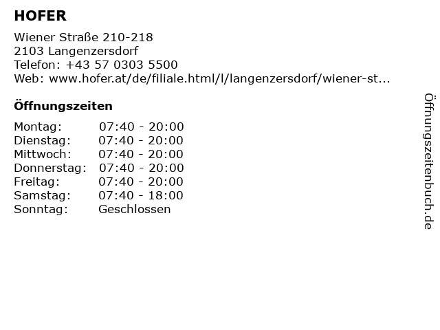 | Öffnungszeiten HOFER in Langenzersdorf anzeigen | |