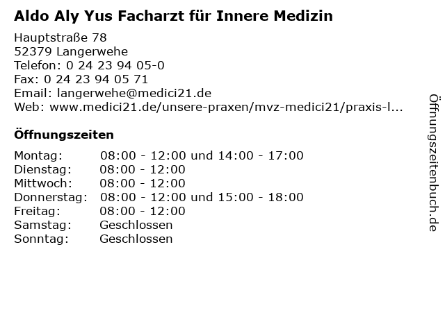 Branchen & Suchbegriffe zu Aldo Aly Yus Facharzt für Innere Medizin:aldo, allgemeinmedizin, aly, arzt, christine, facharzt, innere, medici, medizin, mediziner, praxis, wisniewski, yus |
