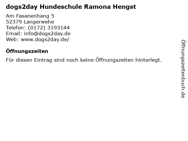 | dogs2day Hundeschule Ramona Hengst anrufen | |