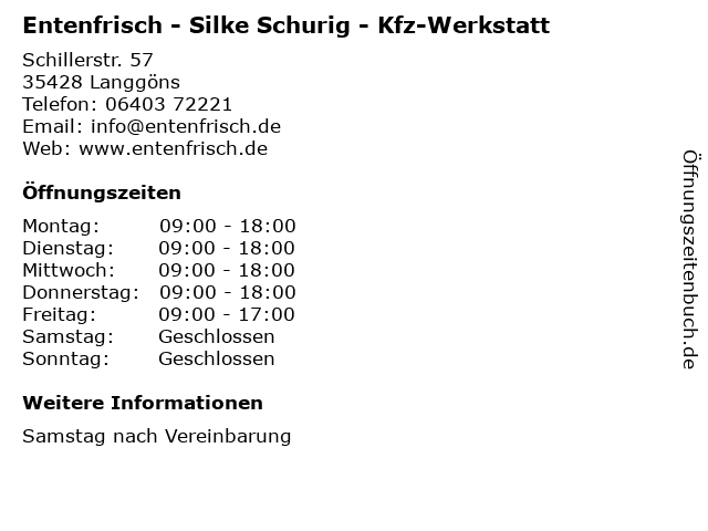 | Branchen & Suchbegriffe zu Entenfrisch - Silke Schurig - Kfz-Werkstatt:christoph, entenfrisch, fahrzeugwerkstätten, frisch, kfz, oldtimer, restaurationen, schurig, silke, werkstatt |