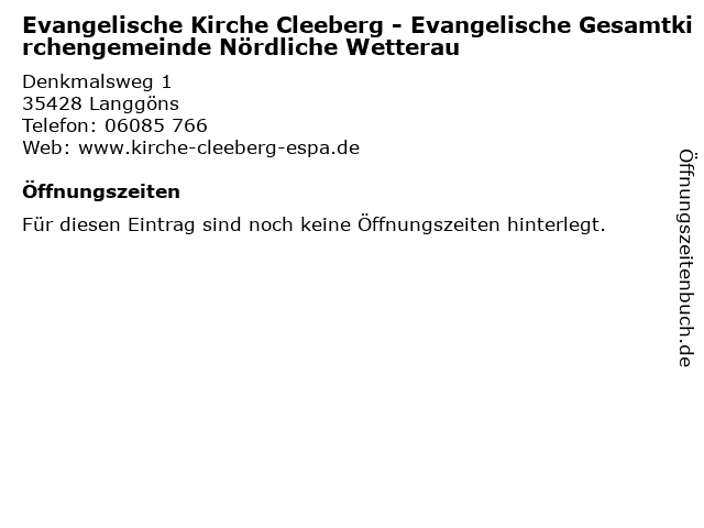 | Evangelische Kirche Cleeberg - Evangelische Gesamtkirchengemeinde Nördliche Wetterau anrufen | |