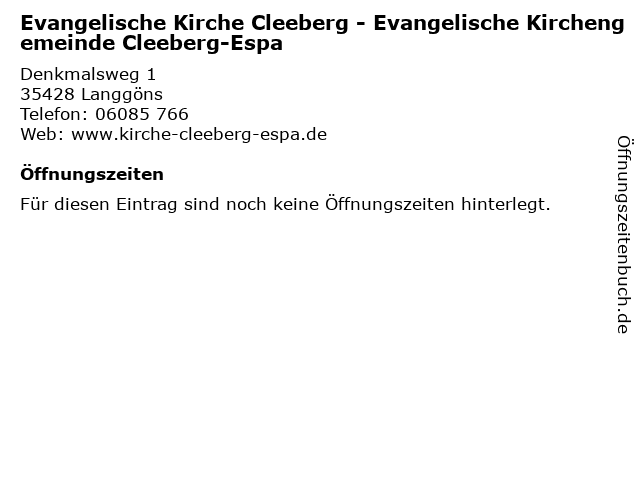 | Evangelische Kirche Cleeberg - Evangelische Kirchengemeinde Cleeberg-Espa anrufen | |