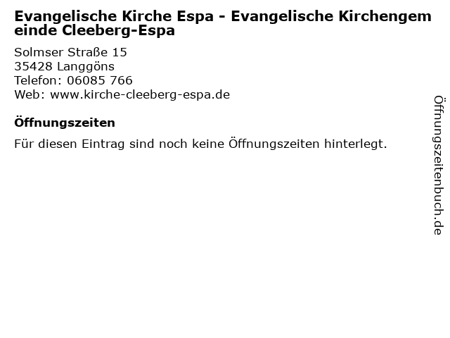 | Evangelische Kirche Espa - Evangelische Kirchengemeinde Cleeberg-Espa anrufen | |