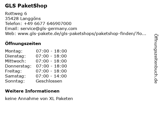 Öffnungszeiten GLS PaketShop in Langgöns anzeigen