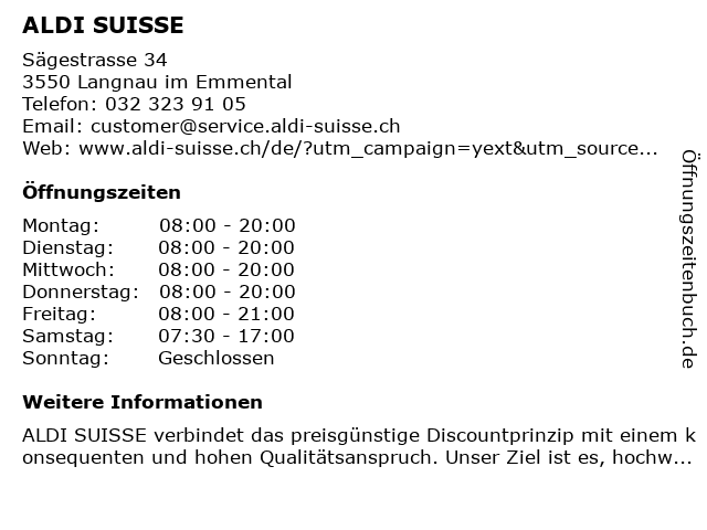 | Öffnungszeiten ALDI SUISSE in Langnau im Emmental anzeigen | |