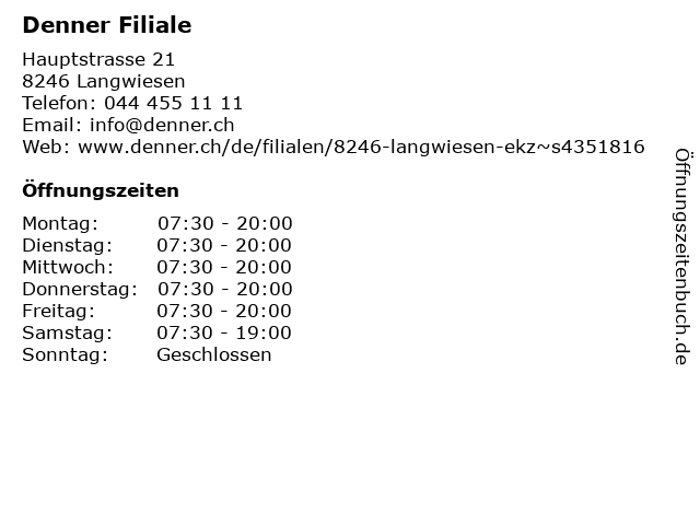| Öffnungszeiten Denner Filiale in Langwiesen anzeigen | |