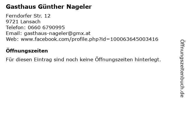 | Öffnungszeiten Gasthaus Günther Nageler in Lansach anzeigen | |