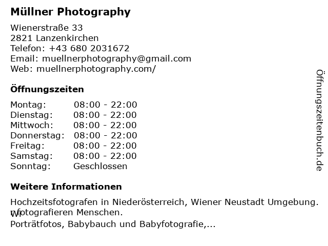 | Öffnungszeiten Müllner Photography in Lanzenkirchen anzeigen | |