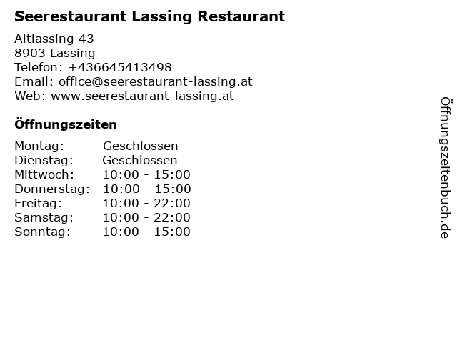 Branchen & Suchbegriffe zu Seerestaurant Lassing Restaurant:essen, gastronomie, getränke, hauptgerichte, lassing, restaurant, salate, seerestaurant, vorspeisen |