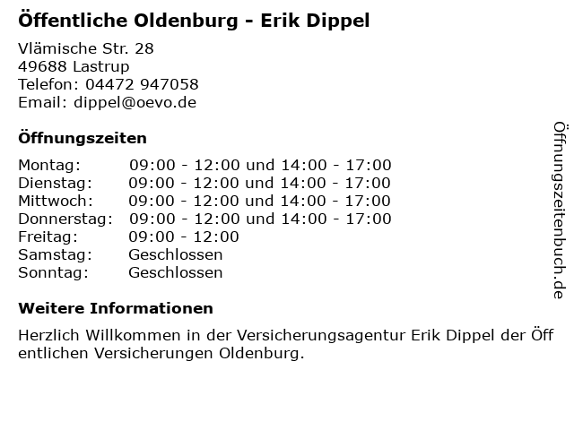 Branchen & Suchbegriffe zu Öffentliche Oldenburg - Erik Dippel:dippel, erik, öffentliche |