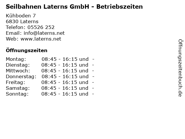Branchen & Suchbegriffe zu Seilbahnen Laterns GmbH - Betriebszeiten:betriebszeiten, laterns, seilbahnen, winter, wintersport |