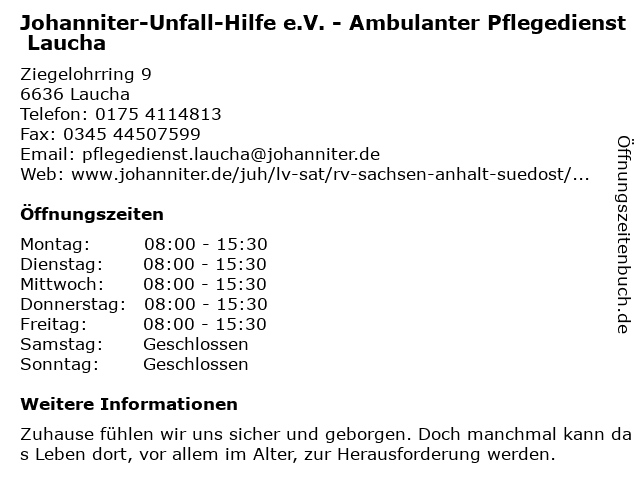 Branchen & Suchbegriffe zu Johanniter-Unfall-Hilfe e.V. - Ambulanter Pflegedienst Laucha:ambulanter, e.v., gemeinnützige organisation, hilfe, hilfsorganisation, johanniter, laucha, pflegedienst, sozialarbeit, unfall, verband, wohlfahrtseinrichtung |