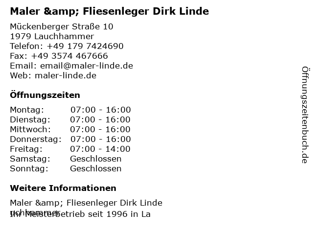 1 LVM Versicherung Dirk Thiele - Versicherungsagentur (Entfernung: 0,78 km) Friedrichsthaler Straße 4, 01979 Lauchhammer 4 Hanisch Stuckateur- & Malerbetrieb Maler und Lackierer (Entfernung: 9,27 km) Schillerstr. 9, 04928 Plessa 6 |