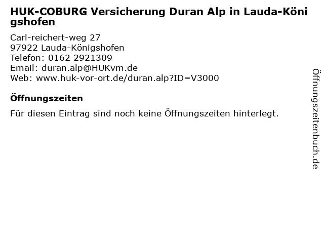 | HUK-COBURG Versicherung Duran Alp in Lauda-Königshofen anrufen | |