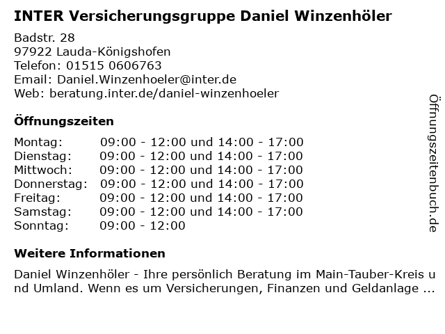 1 Württembergische Versicherung Generalagentur, Daniel Gerhardt (Entfernung: 2,09 km) Würzburger. Str. 74, 97922 Lauda-Königshofen 6 |