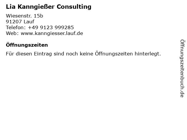 | Öffnungszeiten Lia Kanngießer Consulting in Lauf anzeigen | |