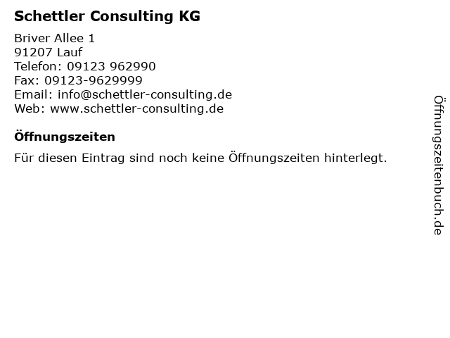 | Öffnungszeiten Schettler Consulting KG in Lauf anzeigen | |